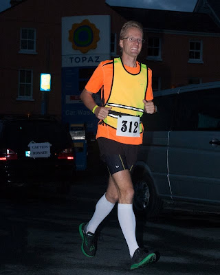 I had intended to more or less run straight through the checkpoint but had noticed the sock rubbing against my left foot so decided to sit down and change socks. I sent the crew ahead and they had prepared everything for my arrival, and we worked through it with the efficiency of a Formula 1 pit stop crew. Niall even chided me afterwards for being unsocial (seems to be a theme developing here). I did ask who was ahead of me, and he confirmed that it was just Grellan, though I confirmed to my crew that I was not going to chase him down, but would still run my own race.