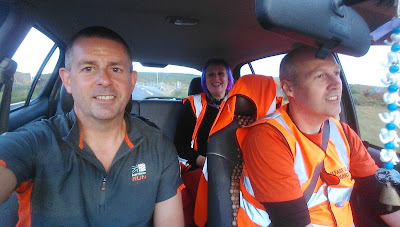 Luckily the rain stopped, I could take off my rain jacket and the road stopped being waterlogged. Only one driver had hooted at me angrily (a BMW of course) and then Seb and Iain turned up in their fancy little sports car and their cheers lifted my spirits a bit more. The road widened, making dealing with the traffic much easier. At mile 38, I turned to the crew with a big grin on my face “only 100 km to go”, which shows that I must have felt much better already (we had agreed beforehand that I could make 5 statements of that kind that before they would punch me).