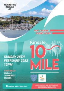 Kinsale Community School, Kinsale, CorkKinsale 10 mile Road Race Feb 26th 2023 at 12pm €25 Race hosted by Riverstick Kinsale AC and Kinsale Community School. The race is set in beautiful Kinsale on a fast course that has been officially measured and is sure to be a venue for PBs with a second 5 mile net downhill and limited […]