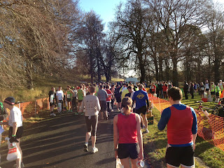 I was wearing the VFFs, I wanted to get back to them as I hadn’t worn them much recently. There were areas generally marked off for "sub-16", "sub-20" etc. I hung around the "sub-25" bit, as I was just planning on doing this as a run, not really as a race. My OH went back to the 30 min area and I started trying to keep warm. I got a few of the usual funny looks, or at least my feet did…you get used to it.