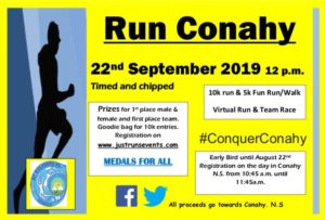 RUN CONAHY 2019 Sunday 22 September 2019 12.00pm Run Conahy is set amongst beautiful scenery and undulating hills. It aims to challenge runners along the 10K route. The event has proven to be very popular over the years with its friendly atmosphere and unique setting. The 5K fun run/walk is a great way to soak up some scenery on a shorter route. Whatever you choose, the question is 'Can you Conquer Conahy?' Chip timed by JustRunsEvents Prizes Medals for all finishers…