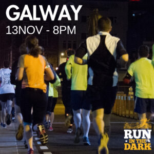 Run in the Dark Galway on the 13th November 2019 Join us for Run in the Dark Galway starting on the Salthill Promenade at 8pm. Challenge yourself to a 5k or 10k run on 13th November and light up the night with 25,000 people in 50 locations across the globe. Each participant will receive a Run in the Dark flashing armband and buff.